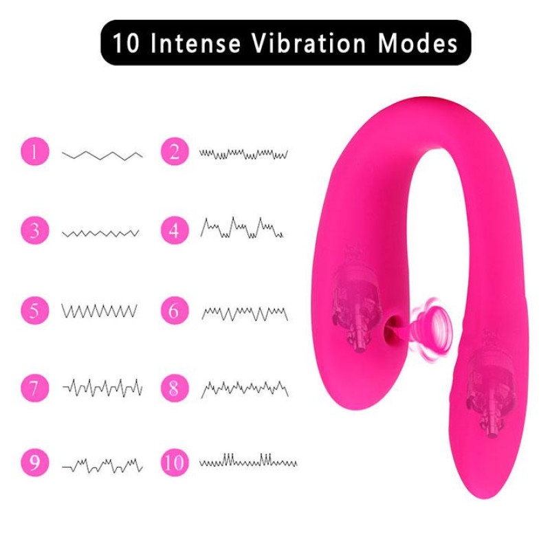 Вібратор для пар з одночасною вібростимуляцією точки G та вакуумною стимуляцією клітора для ще більш яскравих оргазмів. Його форма ідеально підходить для використання спільно з партнером та не викликає дискомфорту під час сексу. Вібратор для пар виконаний з м'якого щільного силікону, приємного на дотик. Він порадує вас вакуумною стимуляцією та 10 режимами вібрації.